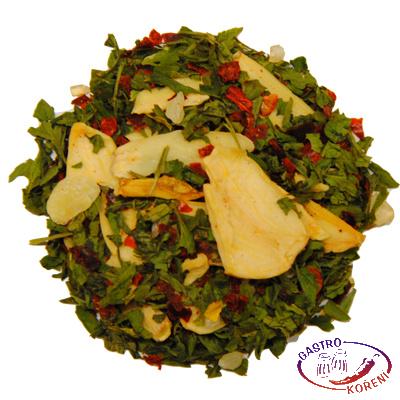 Sůl (max.25%), koření (česnek plátky drcené, chilli drcené, paprika drcená, petržel list). Může obsahovat stopy lepku, celeru, hořčice a sezamu.