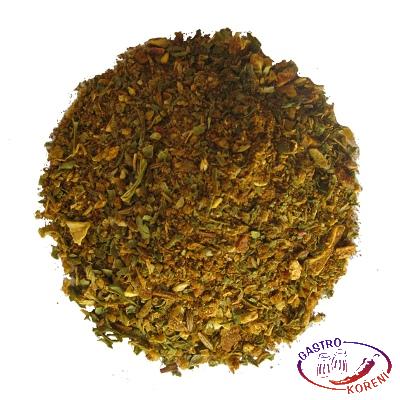 Sůl mořská (max.10%), paprika, cibule, kmín, mrkev, CELER, kurkuma, petržel, cukr třtinový, oregano, pastinák. Může obsahovat stopy lepku, hořčice a sezamu.