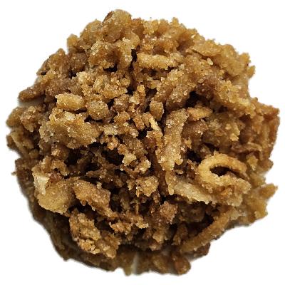 Smažená cibule připravovaná z vysoce kvalitní cibule, která je nakrájená na tenké plátky a smažená do zlatavé barvy v rostlinném oleji.