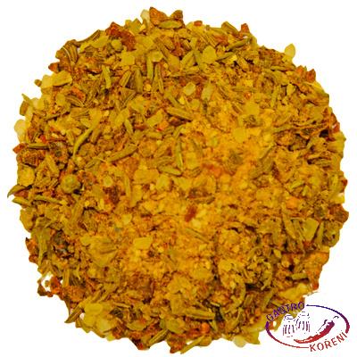 Sůl mořská (max.35%), koření (kmín drcený, paprika drcená, česnek granulovaný, citronová kůra, kurkuma, tymián, cibule, pepř 4-barevný drcený). Může obsahovat stopy lepku, celeru, hořčice a sezamu.