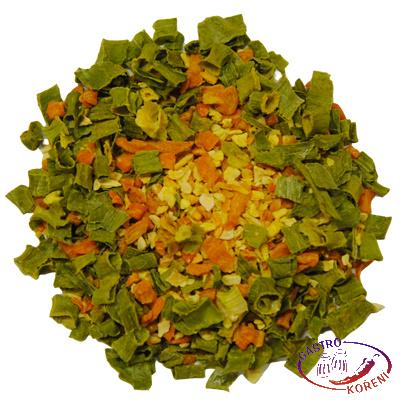 Směs sušené zeleniny v proměnlivých hmotnostních podílech (mrkev, pastyňák, cibule, pažitka), kurkuma. Může obsahovat stopy celeru, hořčice a sezamu.