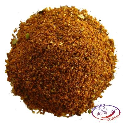 Sůl (max.24%), koření (kmín, paprika, česnek, cibule, kurkuma, pepř černý, oregano. Může obsahovat stopy lepku, celeru, hořčice a sezamu.