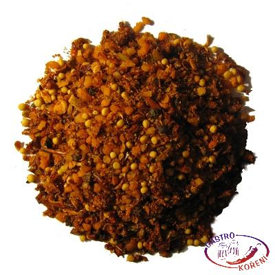 Sůl mořská hrubá (max.19%), sůl jemná (max.9%), koření (paprika, HOŘČICE, kmín římský, pepř černý, cibule, česnek, koriandr, chilli, oregano), cukr. Může obsahovat stopy lepku, celeru a sezamu.