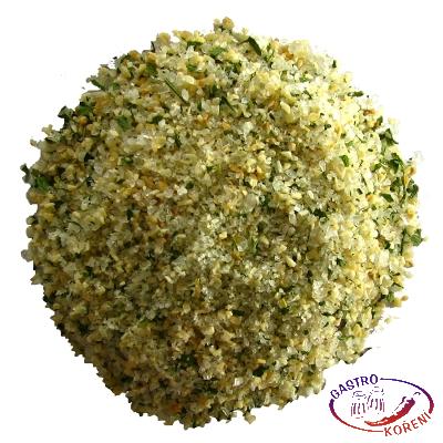 Sůl mořská jemná max.(68%), koření (česnekový granulát, petržel list). Může obsahovat stopy celeru, hořčice a sezamu.