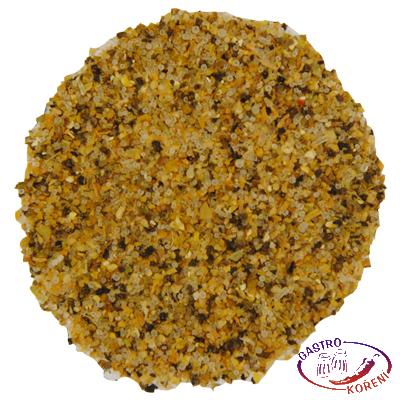Sůl (max.60%), pepř černý tříděný, E 621 glutaman sodný, kukuřičná mouka, česnek, kvasniční hydrolizát, oregano, chilli, kmín římský, bazalka, zázvor. Může obsahovat stopy celeru, hořčice a sezamu.